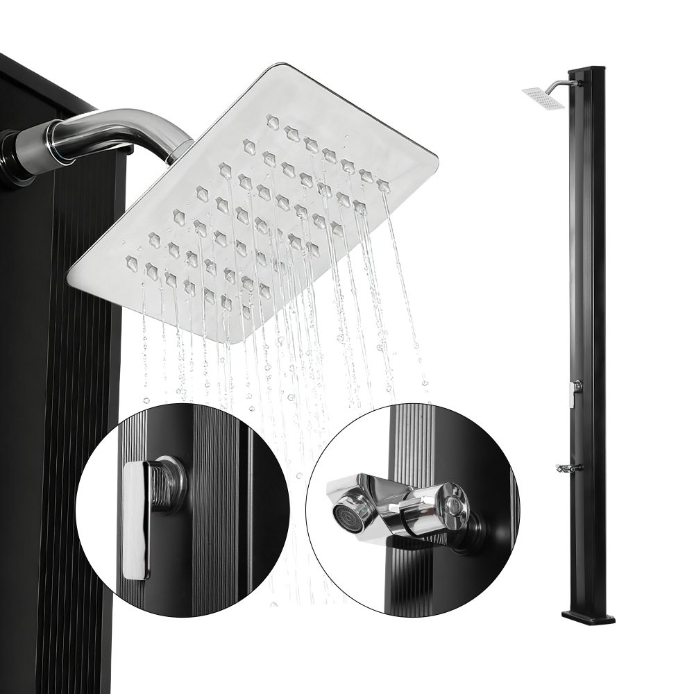 このLY30L02屋外レインシャワーヘッドシングルレバーシャワースタンドは、30リットルのアルミニウムシャワーパイプを備えており、十分な水を提供して快適でさわやかなシャワー体験を提供し、庭や屋外での使用に最適です。シングルレバー混合栓で温度調節が素早く簡単に行え、お好みの湯温に調節できます。大型レインシャワーヘッドには、180°回転する一体型ボールジョイントが搭載されており、冷却効果を高め、取り付けを簡素化し、利便性と快適性を高めています。
