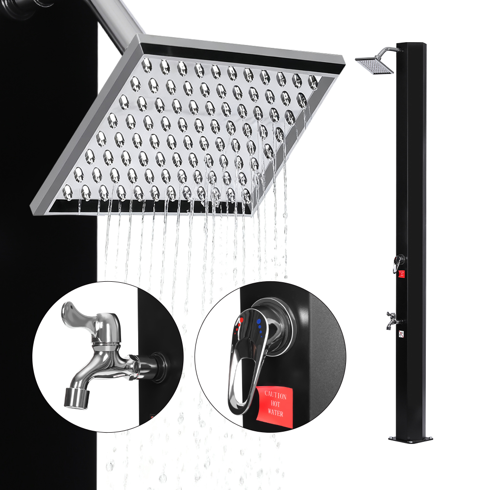 このLY35L05-SSの便利な水溜まり防止ソーラーシャワーは、十分なサイズのシャワーパイプを備えており、完全な太陽光の下で水を効率的に最大60℃まで加熱するため、電気の必要性がなくなり、持続可能な屋外での使用に最適です。標準的なガーデンホースを取り付けてシャワーパイプを満たすだけで、家族全員が庭、プールサイド、さらにはキャンプ場でさわやかで快適なシャワー体験を楽しむことができます。考え抜かれて一体化された金属トレイは、シャワージェルやその他の必需品を手の届くところに置いておくのに便利な場所を提供し、底部の排水穴がスムーズな水の流れを確保し、水溜まりを防ぎます。さらに、シャワーは簡単に分解できるように設計されており、使用しないときはコンパクトに保管できるため、オフシーズンの保管や輸送に特に便利です。