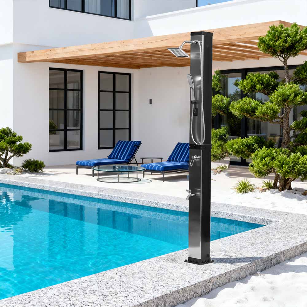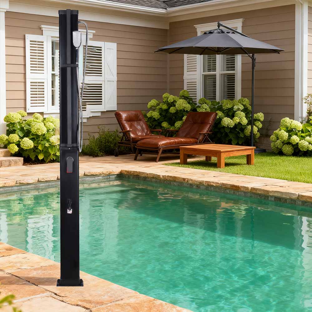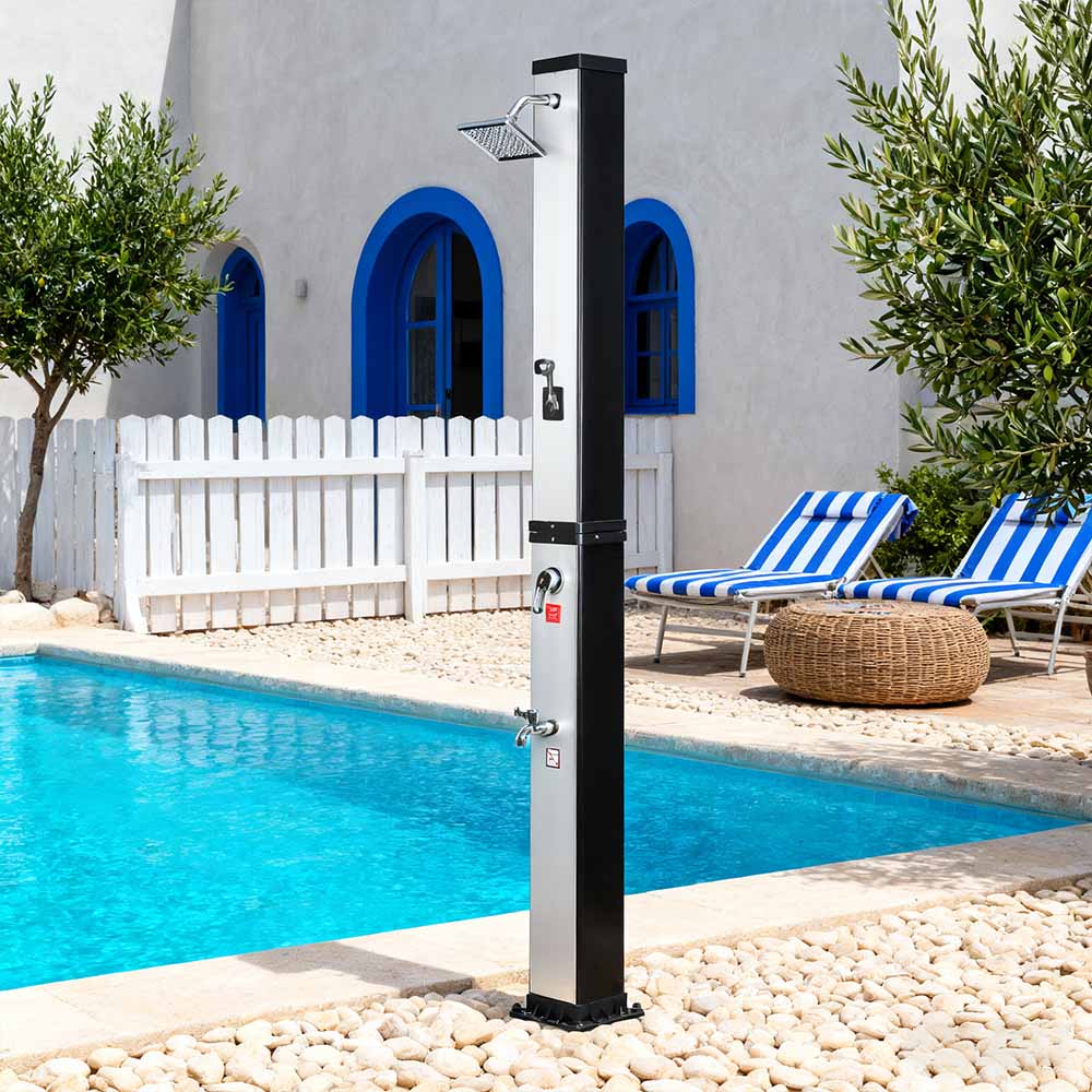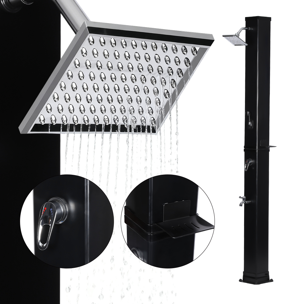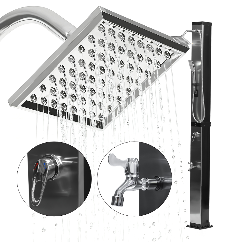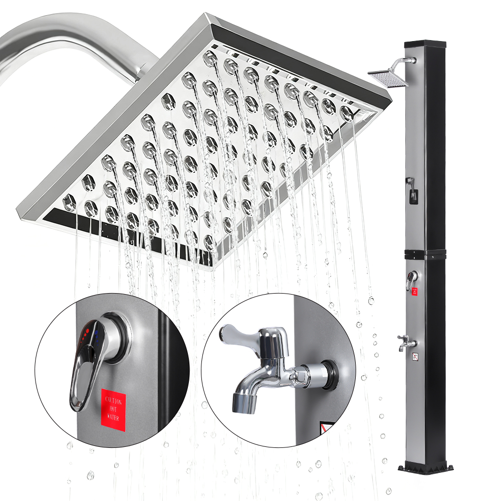 この多機能大容量ソーラーシャワーLY35L07は、太陽光だけを利用して水を最大60℃まで加熱し、省エネで環境に優しい屋外入浴を楽しめます。水を入れるのは簡単です。標準的な庭用ホースを入口に接続するだけで、シャワー パイプはすぐに使用できるようになります。内蔵の金属棚はシャワージェルやその他の必需品を保管するのに便利な場所を提供し、底部の排水穴により水が効率的に流れ、エリアを乾燥した整頓された状態に保ちます。多用途性を念頭に置いて設計されたこのソーラーシャワーは、ビーチ、プールサイド、別荘、ホテル、バンガローなど、さまざまな環境に最適です。柔軟な構造により、さまざまな環境に適応できます。