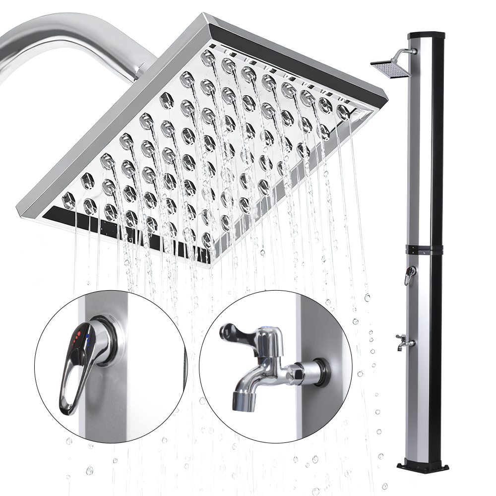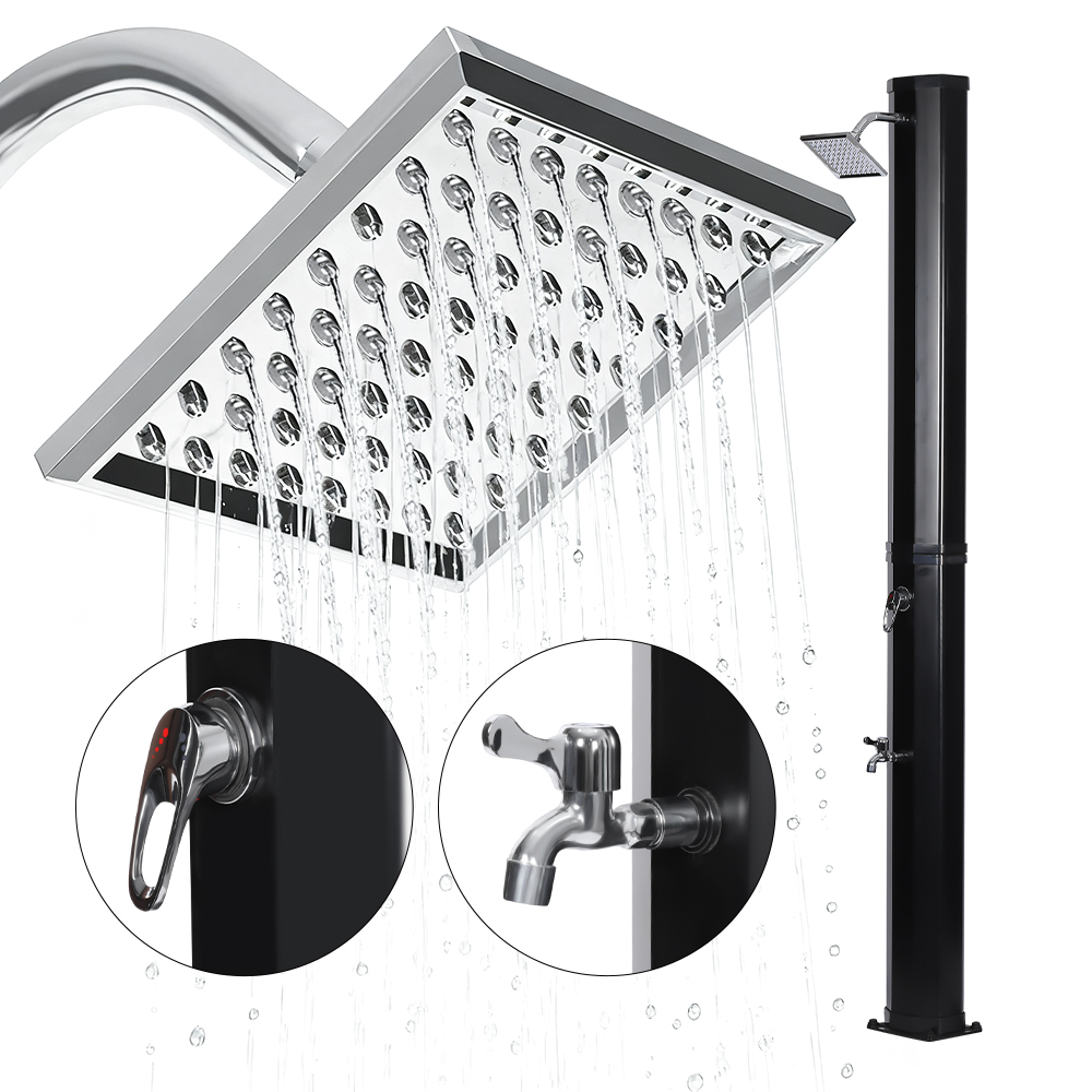 この LY35L08 柔軟でシンプルなソーラー シャワーは、多用途性と実用性の両方を考慮して設計されています。幅広のレイン シャワーヘッドは 360 度回転して総合的な冷却効果をもたらすだけでなく、好みに合わせて水流を柔軟に調整できるため、自然の滝のようなリラックスしたシャワー体験を実現します。設置は簡単で、便利な足踏み式の蛇口により、全身シャワーが必要ない場合でも簡単にスポットすすぐことができ、さらにリフレッシュできます。さらに、シャワーユニットには、素早く簡単に水を注げる標準的なガーデンホース接続が備わっており、排水プラグにより冬前にシャワーパイプを簡単に空にすることができるため、使用していないときの安全性と信頼性が確保され、寿命が延びます。