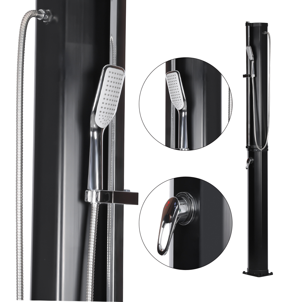 このLY35L08-HBは、太陽光を利用して効率的に動作する、安定した効率的な大容量ガーデンソーラーシャワーです。 35リットルの大きなシャワーパイプは、十分な太陽光の下で水を約60℃に加熱します。補充は簡単で電気を必要とせず、標準的な庭のホースに接続するだけで簡単に行うことができます。大きなレイン シャワーヘッドは快適な冷却体験を提供し、統合されたボール ジョイントによりさまざまな角度に最大 180 度回転できます。取り付けもとても便利です。全体の構造は耐久性のある耐紫外線プラスチックで作られており、長期間の屋外暴露に効果的に耐えます。シャワーヘッドはすぐに分解できるので、場所間の移動やオフシーズンの保管が簡単です。頑丈な金属ベースにより、設置後の安定性と安全性が確保され、庭、プールサイド、キャンプ場などで快適な屋外シャワーを楽しむことができます。